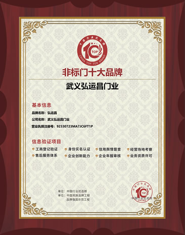 武義縣弘運昌門業是一家集產品研發、設計、制造、銷售與服務于一體的新型公司。其創立的品牌弘運昌始終以市場為導向,依托先進的生產工藝,追求新穎的流行元素,運用獨具匠心的功能設計,引用歐洲先進生產工藝,并采用現代化生產模具、工藝設備,將中西方文化精髓有機結合,不斷推陳出新。在短短幾年間,弘運昌門業迅速在業界崛起,成為高檔非標門、防盜門等高端戶外金屬門行業的領頭羊,引領著整個高端非標門行業的發展。憑借自身的設計創新、理念創新、技術創新以及精湛的工藝,弘運昌門業贏得了國內外市場的認可。為響應市場需求,公司擴大生產規模,在浙江武義建立了現代化、標準化新廠區,為成就弘運昌門業第一品牌奠定了堅實基礎。
